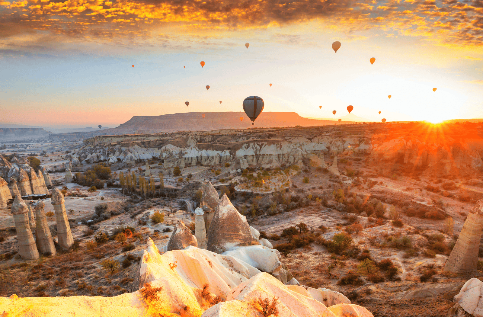 Begin your day with an optional Cappadocia Hot Air Balloon Ride, one of the most iconic experiences in Türkiye. Soar above the fairy chimneys and valleys at sunrise, capturing unforgettable views of the dreamlike landscape. After landing, enjoy a light celebration before heading back to your hotel.
